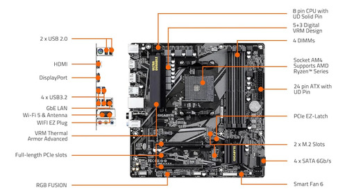 🚀 Socket AM4: Soporta procesadores AMD Ryzen serie 5000, 4000 y 3000.