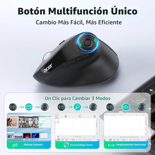 Este mouse ergonómico de Acer redefine la experiencia de uso con su diseño que se adapta perfectamente a tu mano, minimizando la fatiga incluso en largas jornadas. Sus 8 botones programables y su conexión inalámbrica RF 2.4 GHz te brindan un control superior y una libertad de movimiento sin precedentes, ideal para profesionales y entusiastas de la tecnología que buscan eficiencia y confort.