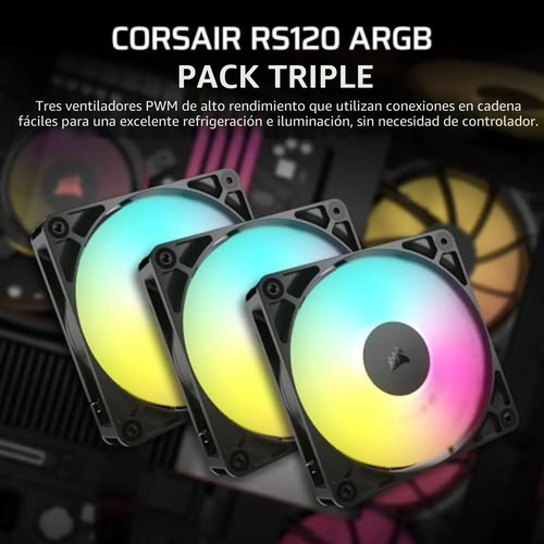 Potencia tu setup con el Ventilador Corsair RS120 ARGB de 120mm PWM, diseñado para una refrigeración superior y una estética vibrante que transformará tu PC. Experimenta un flujo de aire optimizado y un espectáculo de luces personalizable. 🌈