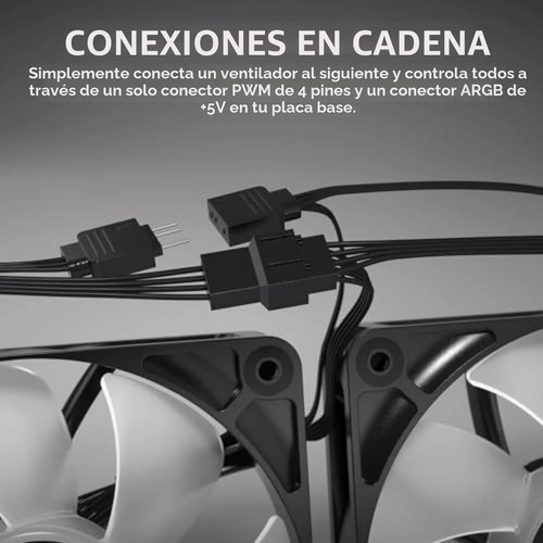 Este ventilador no es solo una pieza de hardware, es una declaración de estilo y rendimiento. Con su tecnología PWM, ajusta la velocidad inteligentemente para mantener tus componentes frescos incluso bajo máxima carga, mientras que su iluminación ARGB sincronizable añade un toque visual impresionante a tu estación de juego o trabajo.